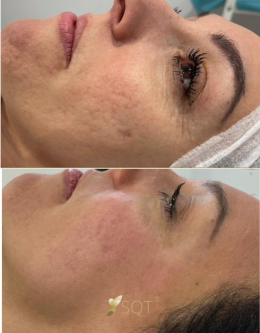 Vďaka výkonu 4 v 1 (nahrádza mezoterapiu, peeling, dermabraziu a rádiofrekvenciu) vidíme pri SQT Resurfacing výsledky už po prvom ošetrení. Pre salóny je to najsilnejší nástroj na riešenie problematickej pleti, pretože nevyžaduje prístroje a minimalizuje riziko roznesenia infekcie, ktoré hrozí pri kovových ihlách.
