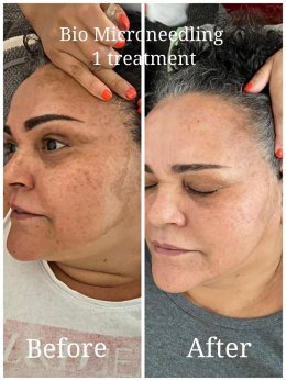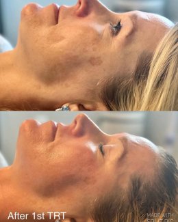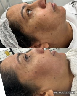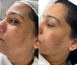 Ošetrenie Revitalizing využíva silu nepolámaných bio-ihličiek, ktoré do pokožky vnášajú aktívne látky pre potlačenie melanínu. Na fotografiách pred a po je jasne viditeľný ústup hyperpigmentácie a celkové oživenie pleti.